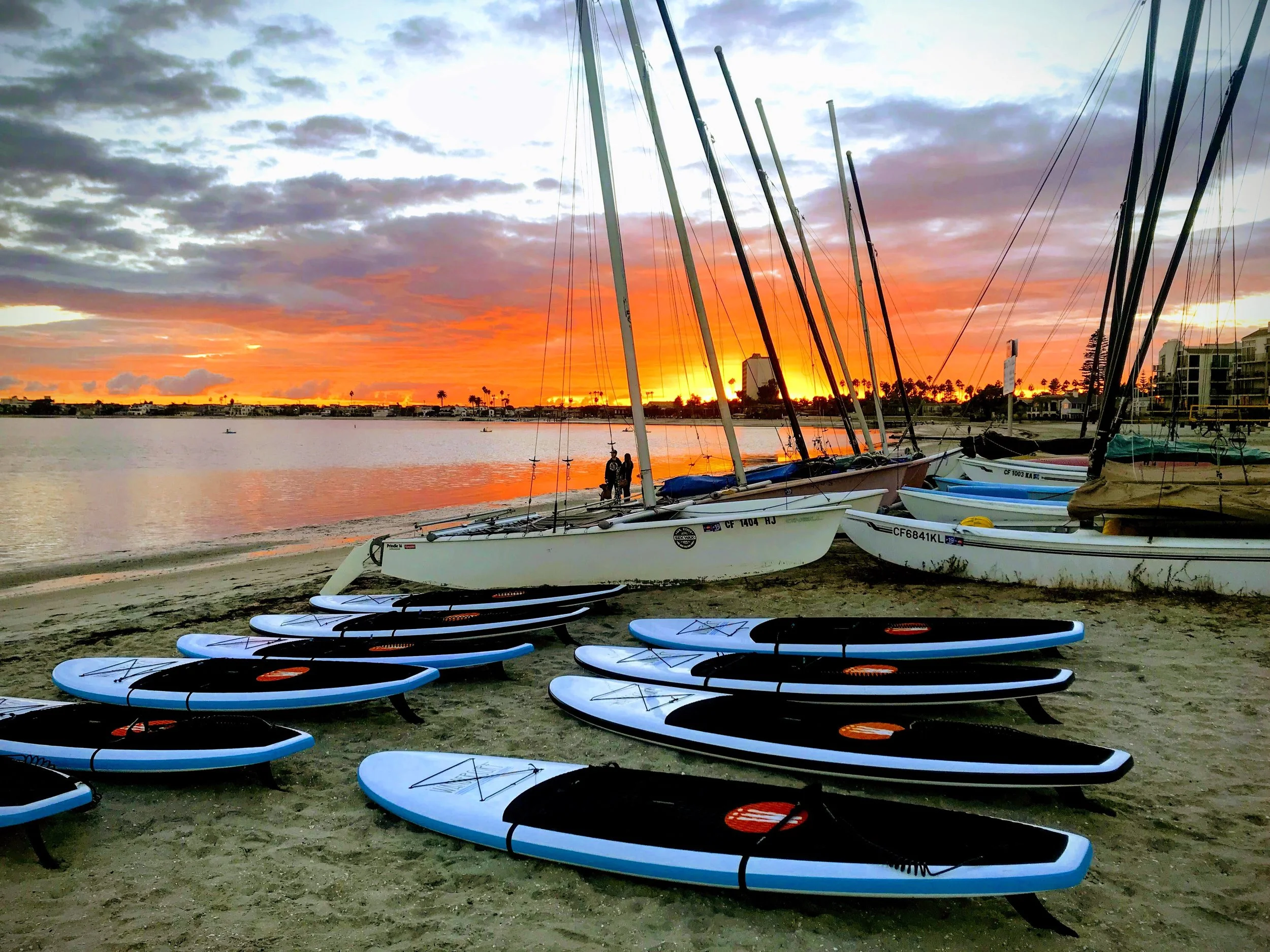 Start your morning off with some standup paddle boarding (SUP) and enjoy a San Diego sunrise. You will learn the basics of SUP: stance, paddle stroke technique, turning, getting on and off the board, and safety. After basics are covered we will venture out for a beautiful San Diego morning paddle around Mission Bay. It’s an excellent spot to paddle due to low traffic and calm water. Total time is 90-120 mins